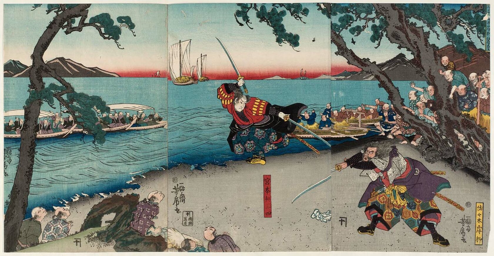 Самый известный его поединок состоялся против мастера по имени Сасаки Кодзиро, прославившегося своим длинным мечом и грозной техникой «Ласточкин удар». Мусаси намеренно опоздал на дуэль, чтобы вывести противника из равновесия, и одержал победу, используя деревянный меч, вырезанный из весла по пути на остров, где их ждал решающий бой.